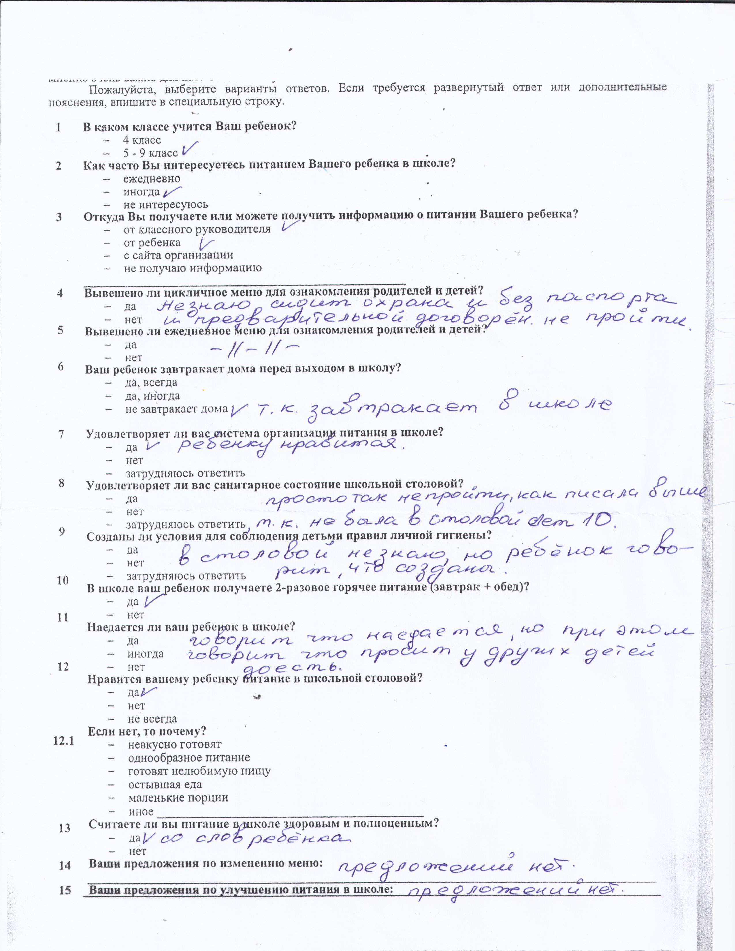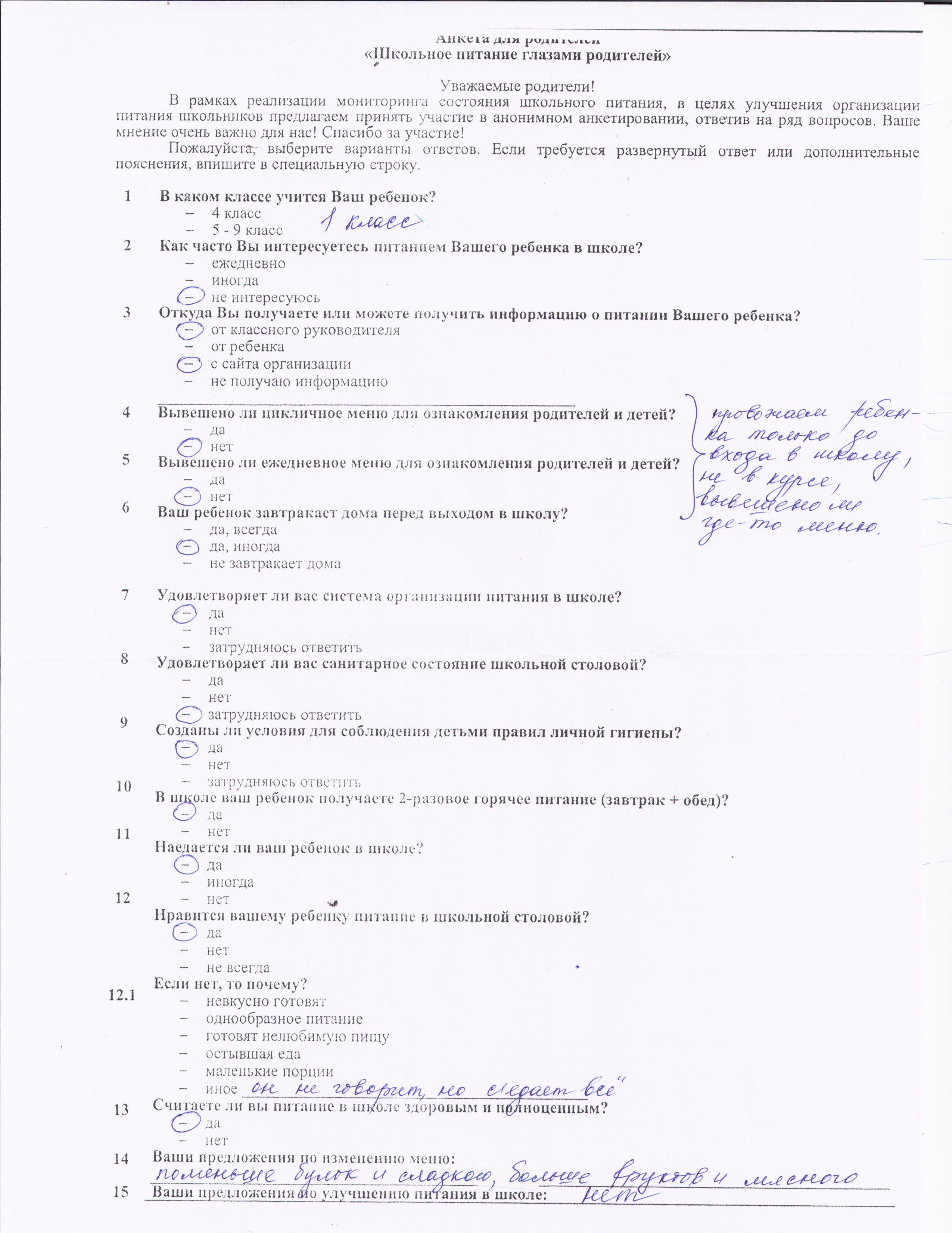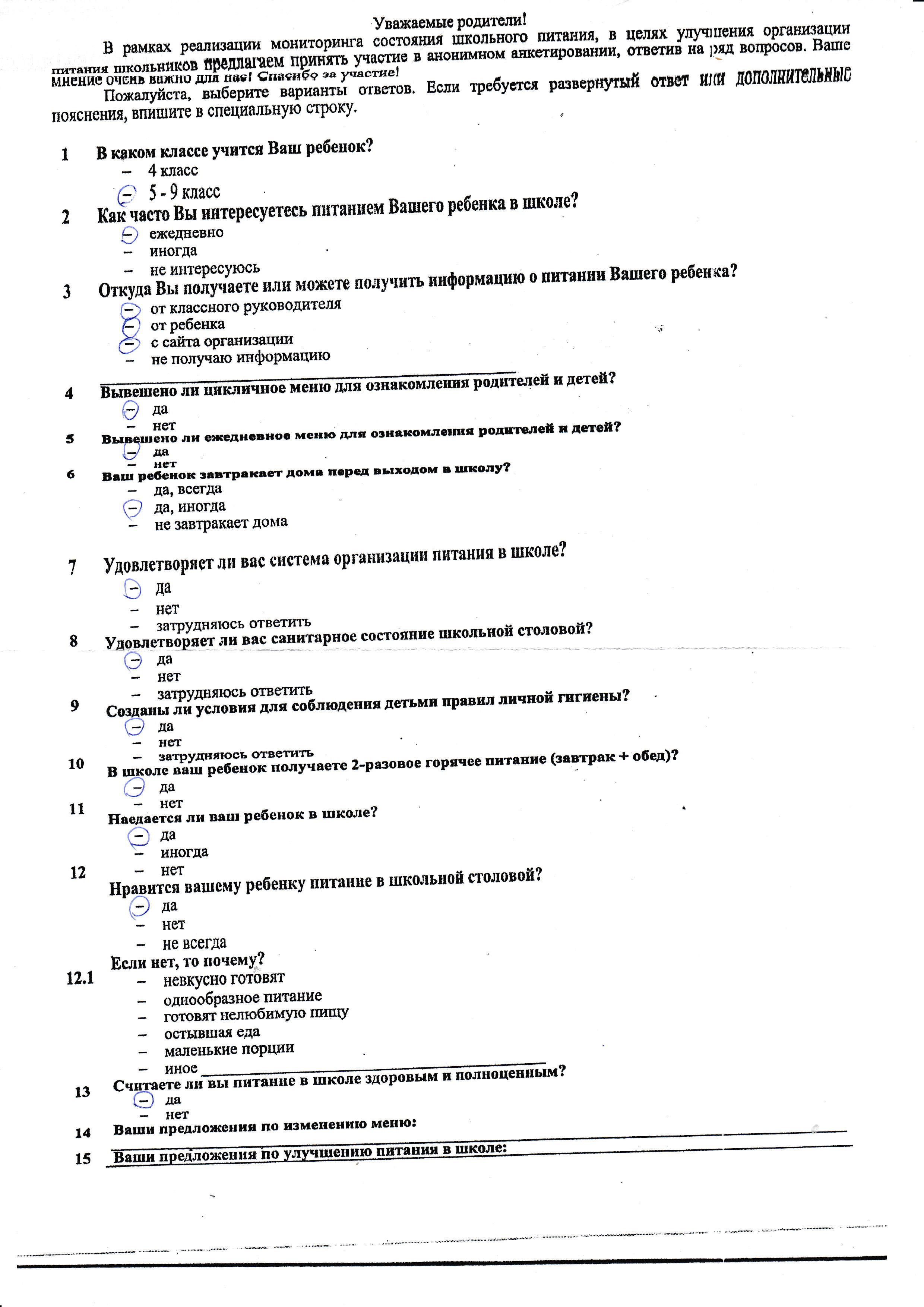 Проведен анализ анкет родителей в рамках мониторинга школьного питания, в целях улучшения организации питания школьников учреждения в декабре 2025 года.