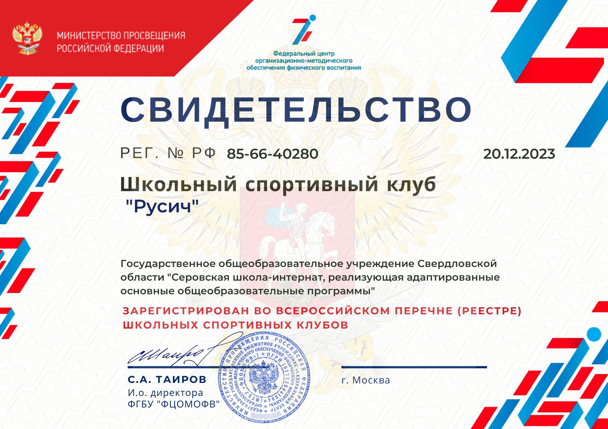 Школьный спортивный клуб "Русич" добровольное общественное объединение, способствующее развитию физической культуры и спорта в школе-интернате.