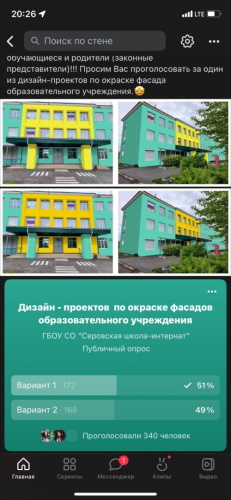 С 26.07.2022 года по 29.07.2022 года прошло голосование родительской общественности, обучающихся за один из дизайн-проектов по окраске фасада образовательного учреждения. Приняло участие 340 человек. По результатам голосования выиграл проект № 1 - количество проголосовавших 172 человека.Согласно Соглашения о предоставлении в 2022 году субсидий на реализацию мероприятий по модернизации школьных систем образования № 20-2022-052060 от 24.02.2022 года предоставлена субсидия на сумму 14 417 571,43 рублей.