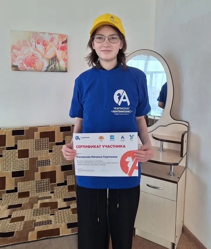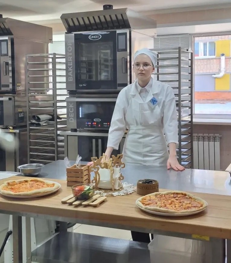 Участница Чемпионата по компетенции «Мастер по приготовлению пиццы» — Наталья Степанова, ученица 9 В класса . Её руководитель — учитель трудового обучения Любовь Васильевна Котомцева . В конкурсе Наташа готовила две пиццы: «Маргарита» и «4 мяса» . Конкурс собрал много сильных участников со всей области, и Наталья достойно справилась с заданием, 8 место из 13 учстников.