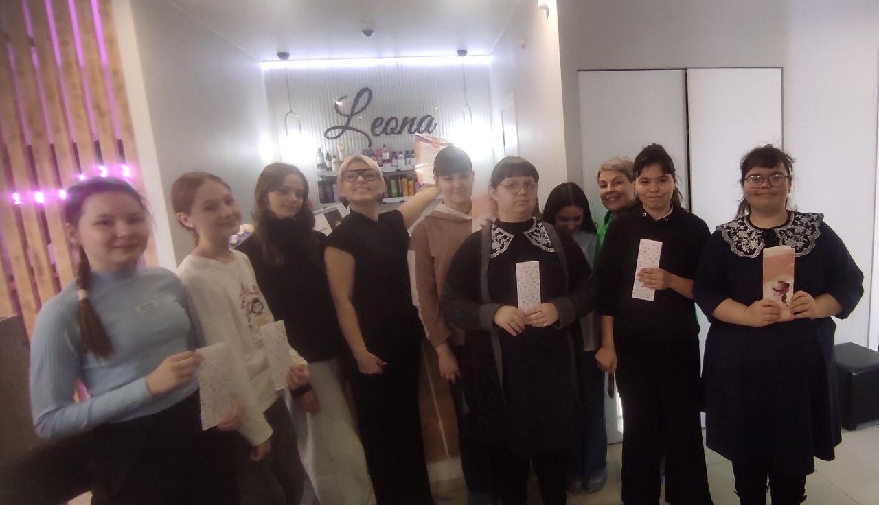 26 февраля девочки 7-9 классов побывали с экскурсией в салоне красоты "Леона". Управляющая Елена Сергеевна Русинова рассказала девочкам о работе салона, какие услуги здесь оказывают. Девчонки сами стали участниками процесса, были и мастерами и клиентами. Заплетали косички, делали стрижки на манекене, даже попробовали себя в роли мастера по маникюру. Выражаем огромную благодарность Елене Сергеевне и её команде за прекрасное путешествие в мир красоты! Девчонки получили огромное удовольствие, ушли счастливые и довольные ещё и с подарками от салона!