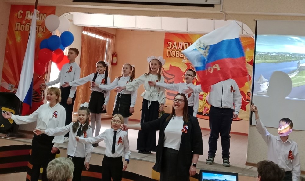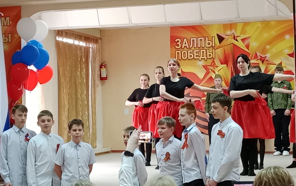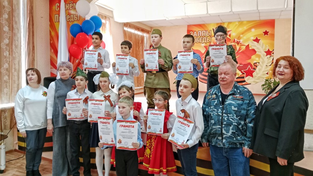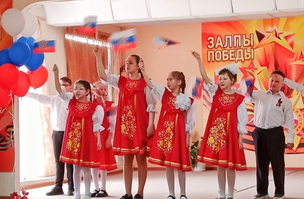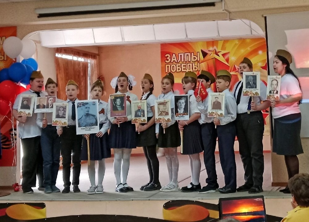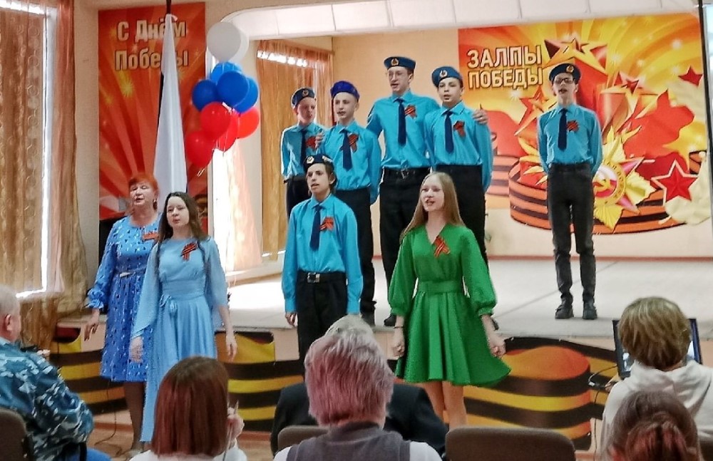 Ребята вместе с педагогами и родителями исполнили известные военные песни, которые стали символами стойкости и надежды в трудные времена. Со сцены звучали и современные песни о Родине, о российской армии.