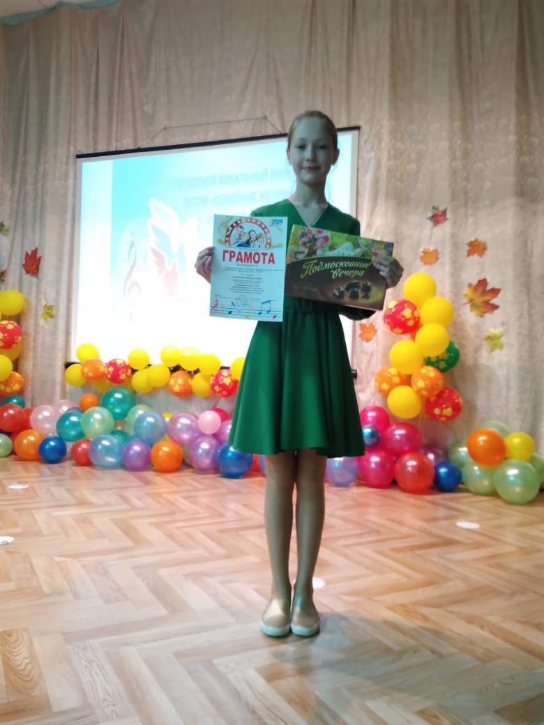 Поздравляем Сафаргалинову Регину, призёра городского вокального конкурса "Семейные мотивы", руководитель Буркова В. Н.!