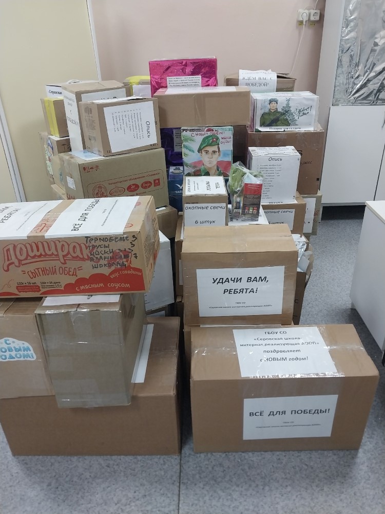 Суть акции состоит не только в том, чтобы оказать материальную помощь, не менее важно поддержать боевой дух солдат, ведь всегда будет приятно знать, что о тебе помнят: твоя Родина, твоя страна, твои родные люди! Показать единство граждан, быть вместе, не бросать своих соотечественников и наших военнослужащих, которые каждый день демонстрируют героизм и мужество. Все вместе дети, сотрудники школы-интерната, родители плели сети, изготавливали окопные свечи, спички, изготавливали новогодние открытки, ребята шили талисманы-обереги. Сотрудниками и родителями учащихся были собраны продукты длительного хранения, средства личной гигиены, а также теплые вещи. Выражаем огромную БЛАГОДАРНОСТЬ всем, кто принял участие в акции, выразил свое неравнодушие, отзывчивость и оказал помощь, которая была по силам.