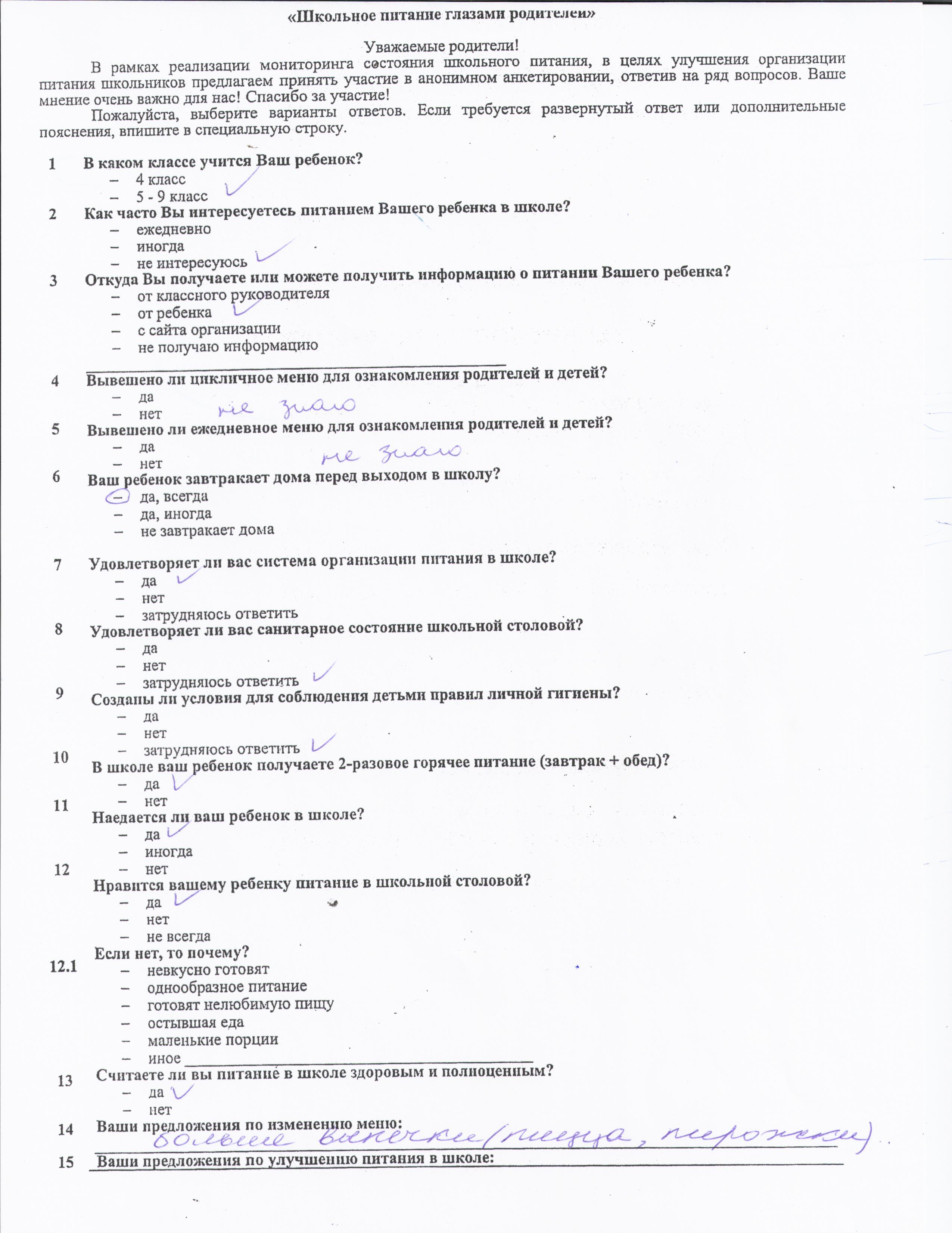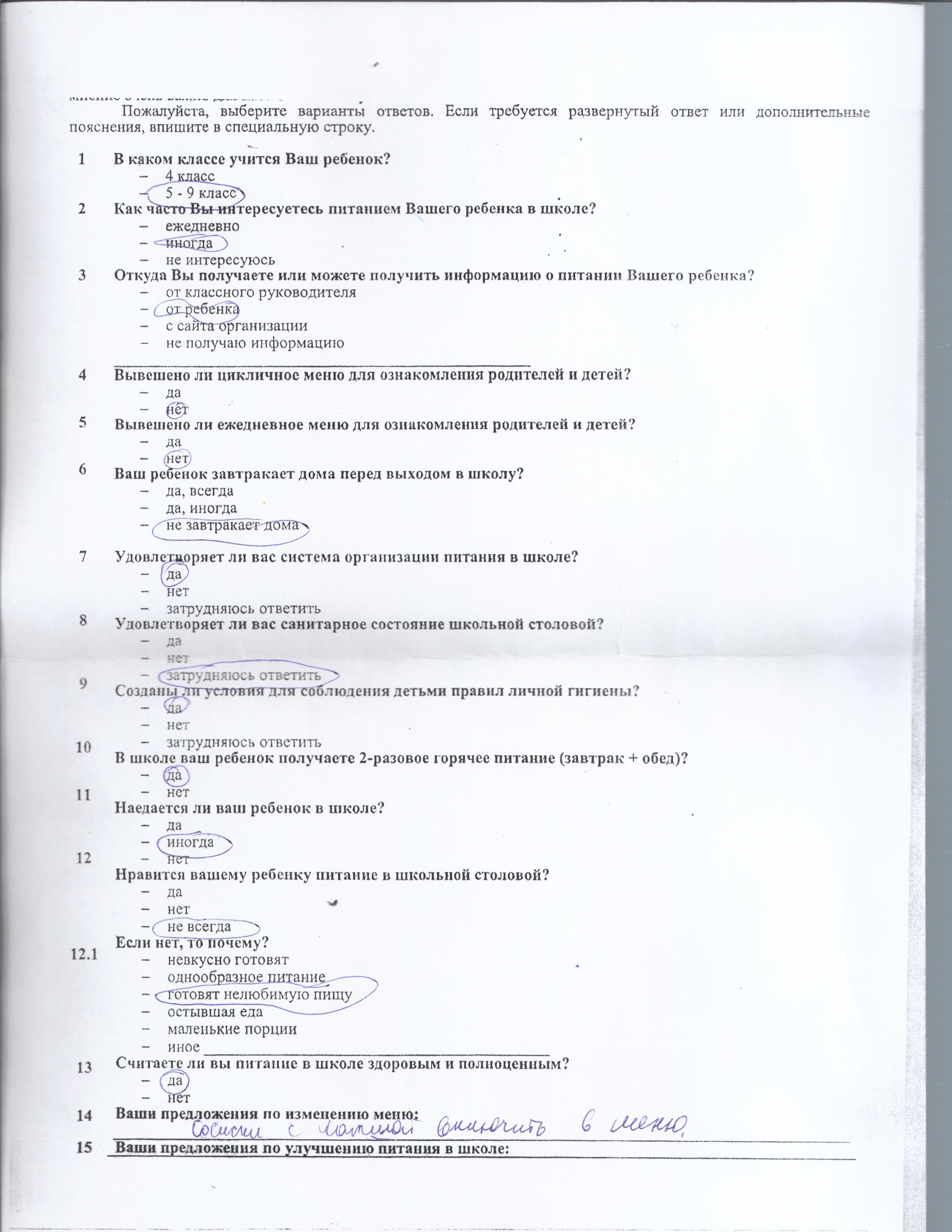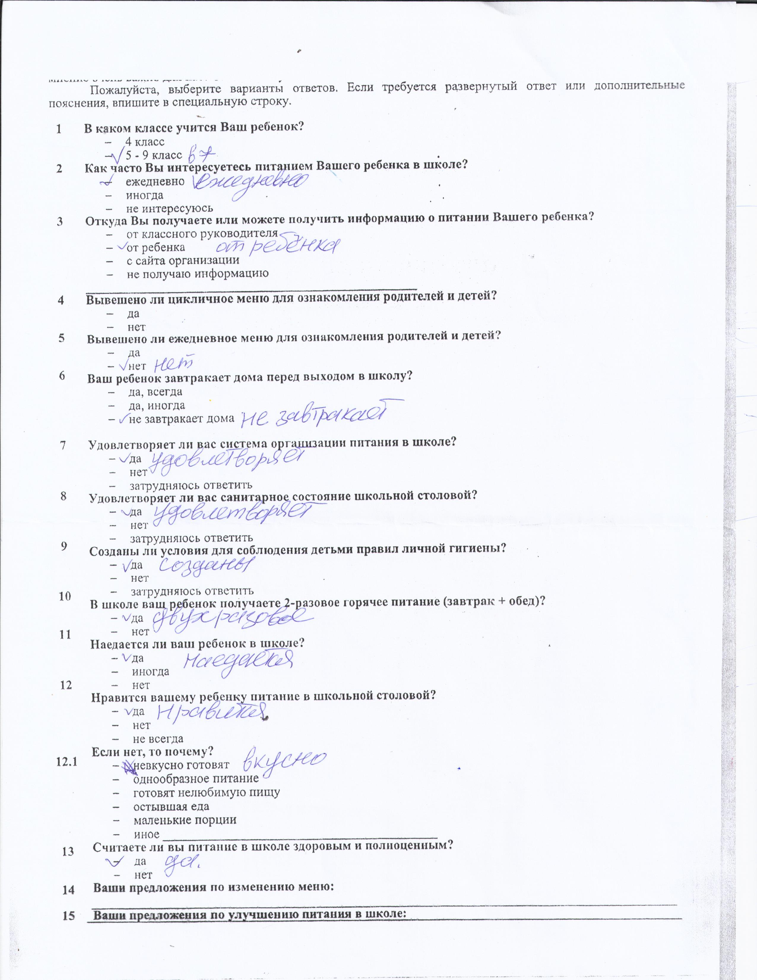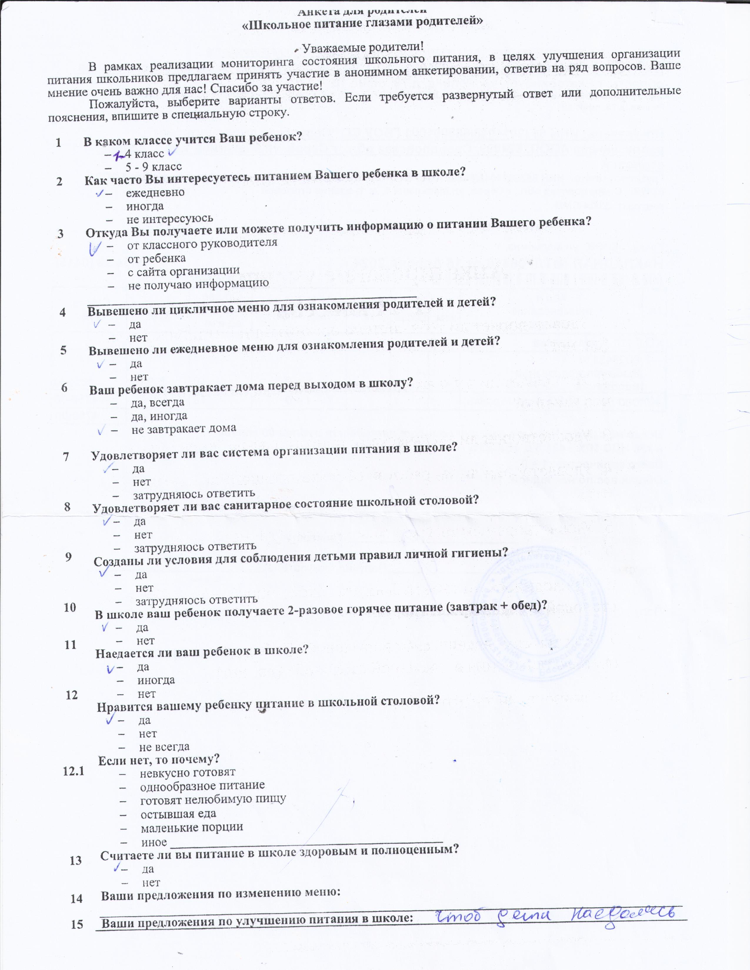 Проведен анализ анкет родителей в рамках мониторинга школьного питания, в целях улучшения организации питания школьников учреждения в декабре 2025 года.
