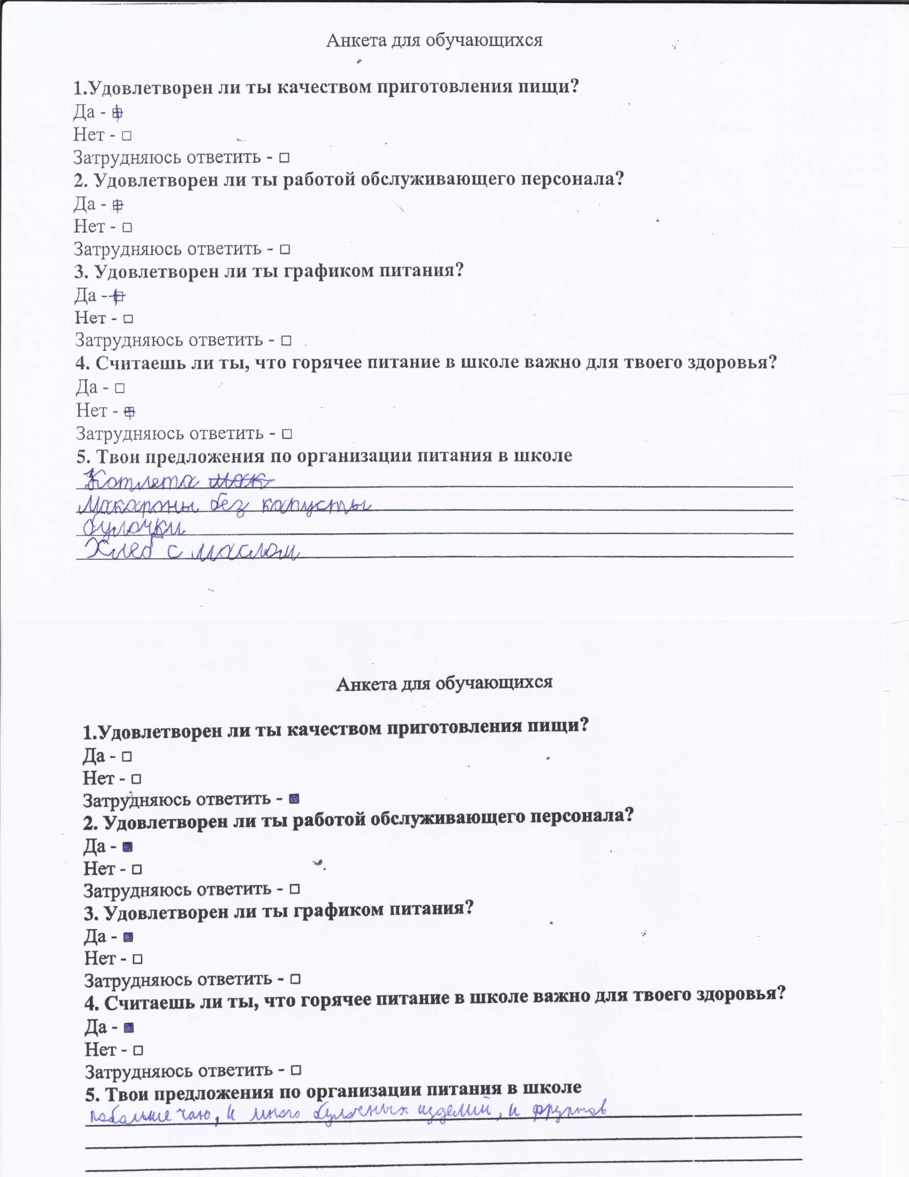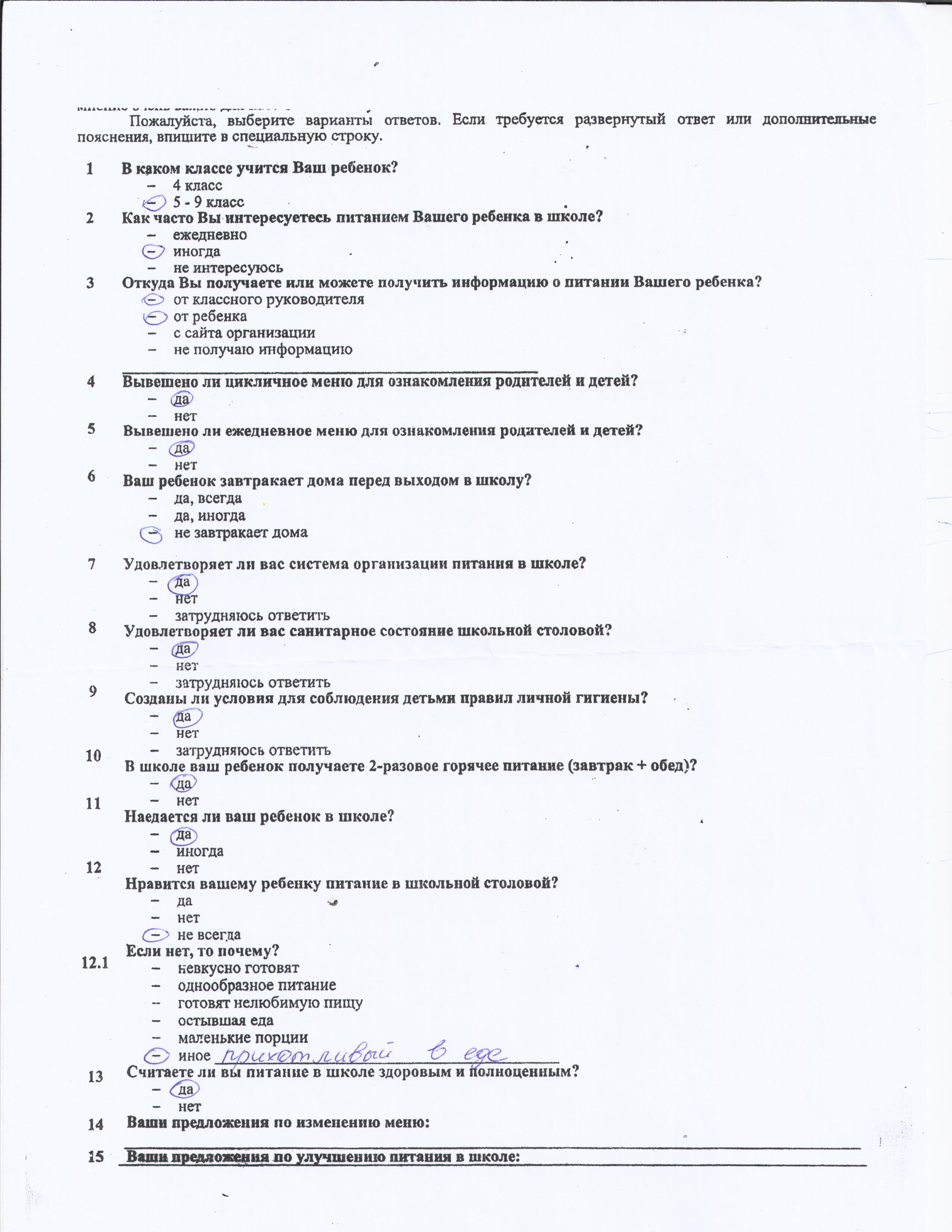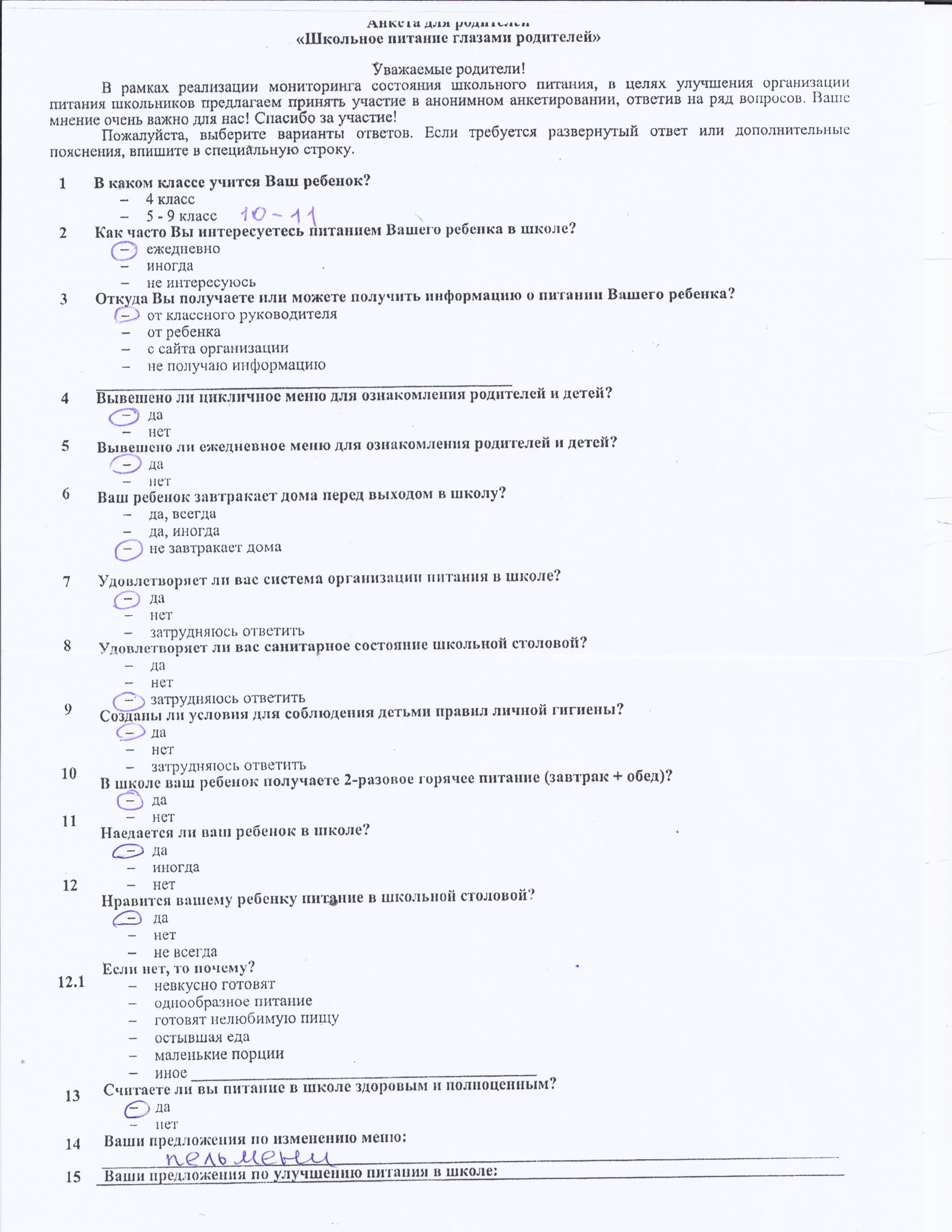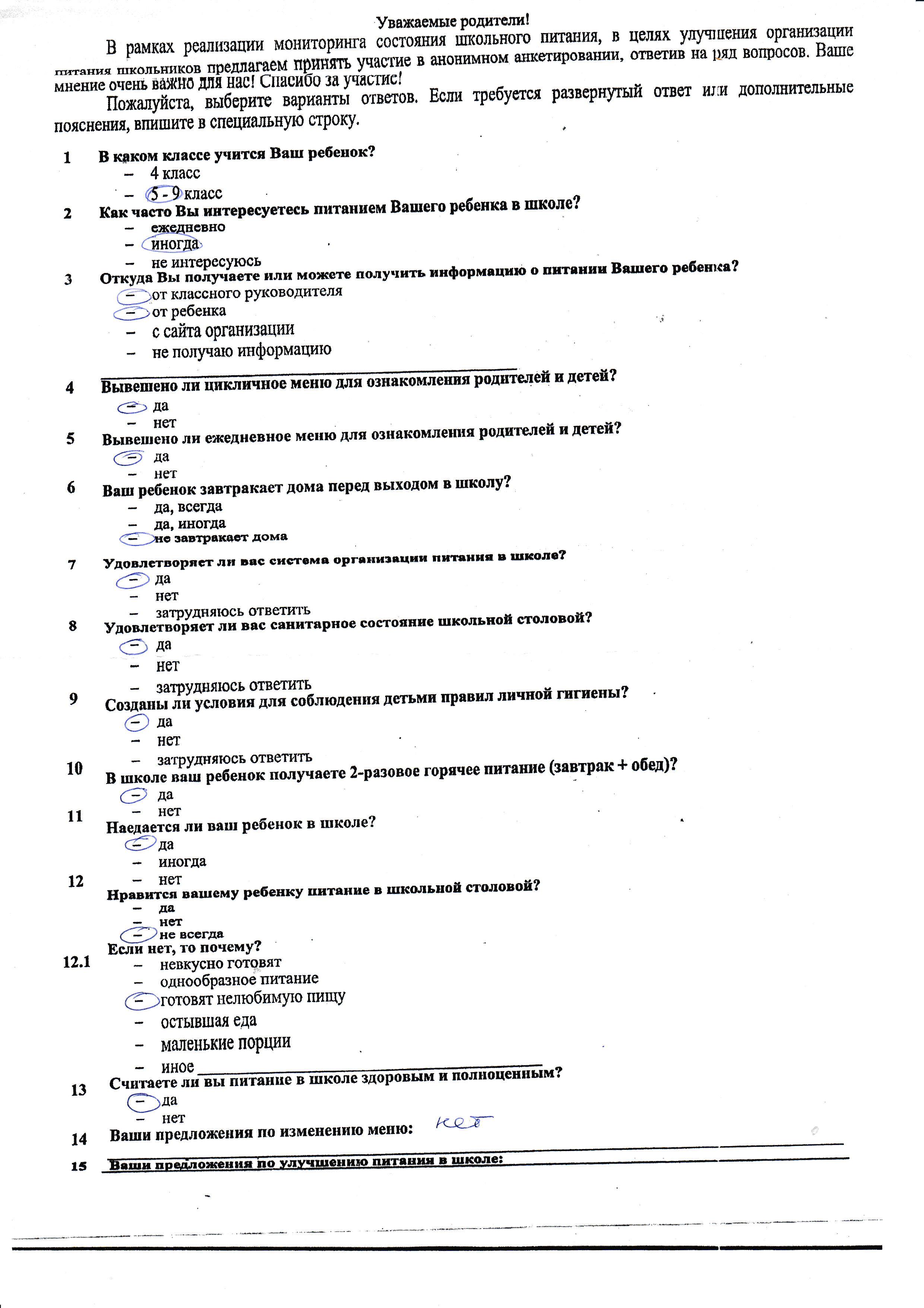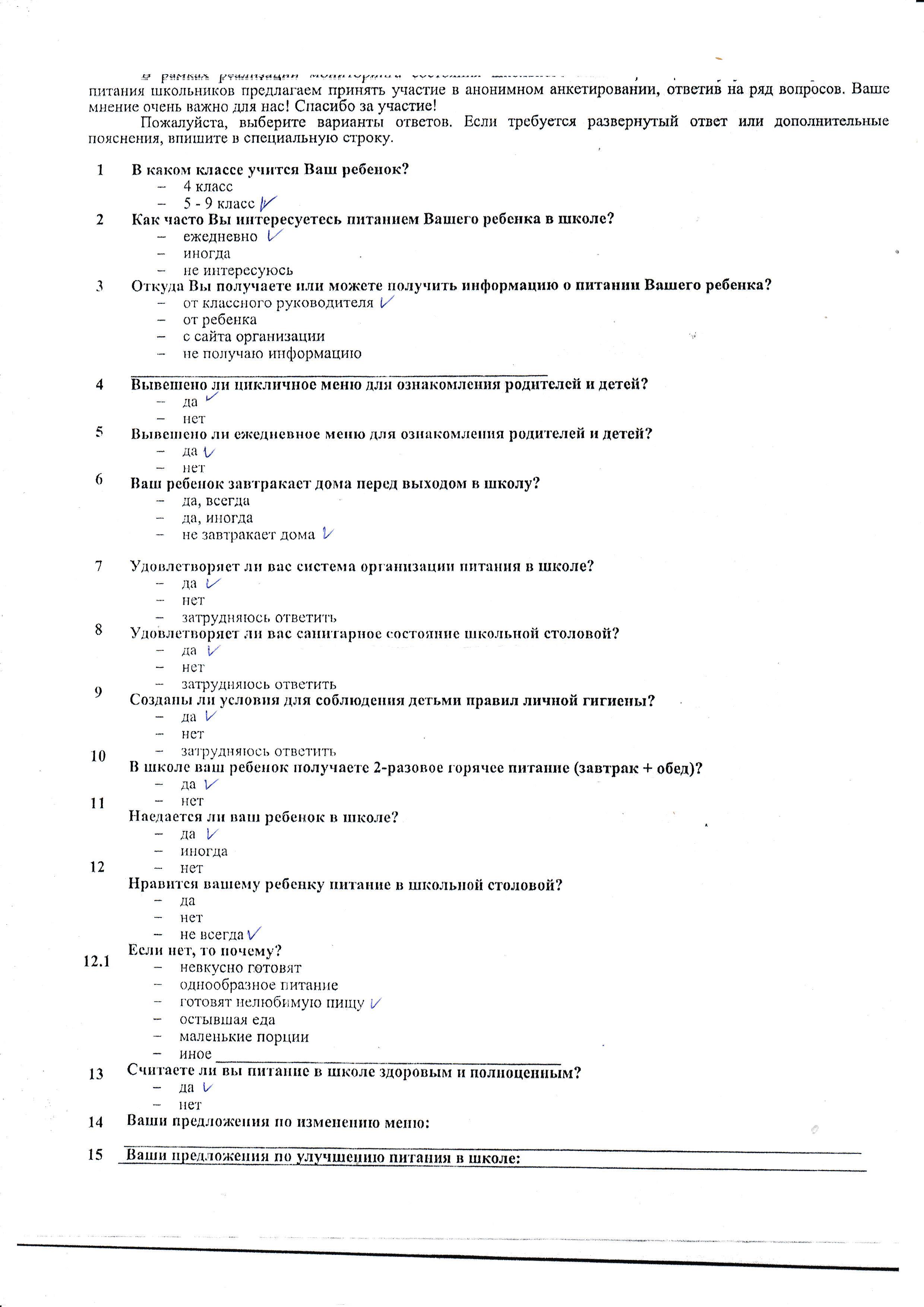 Проведен анализ анкет родителей в рамках мониторинга школьного питания, в целях улучшения организации питания школьников учреждения в декабре 2025 года.