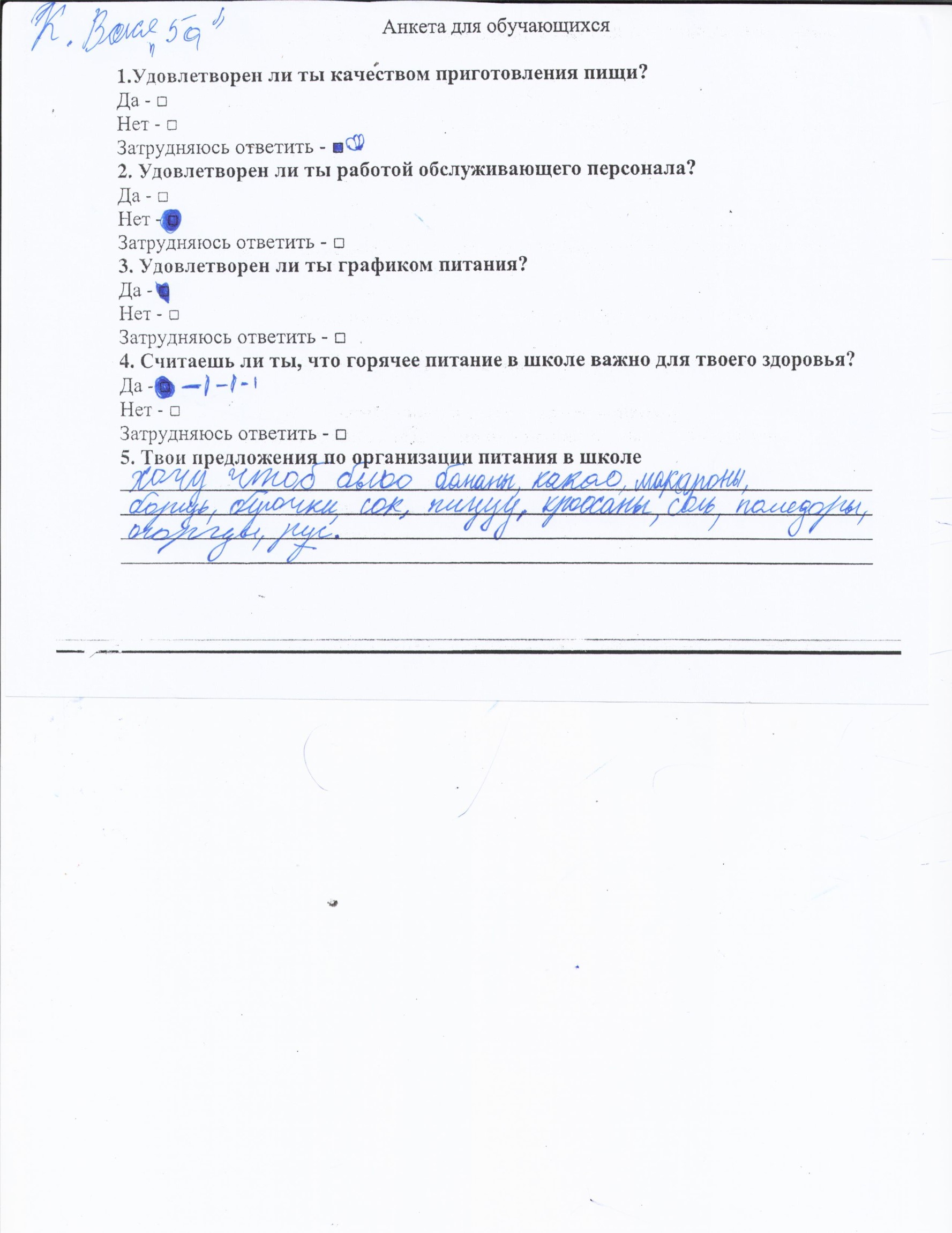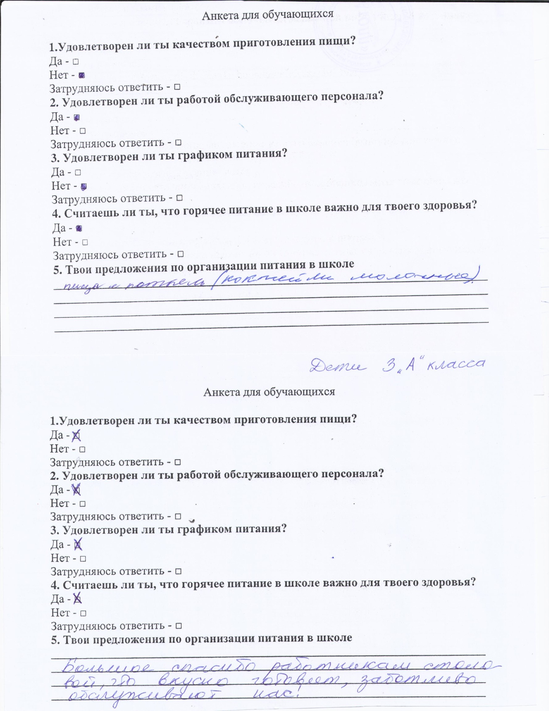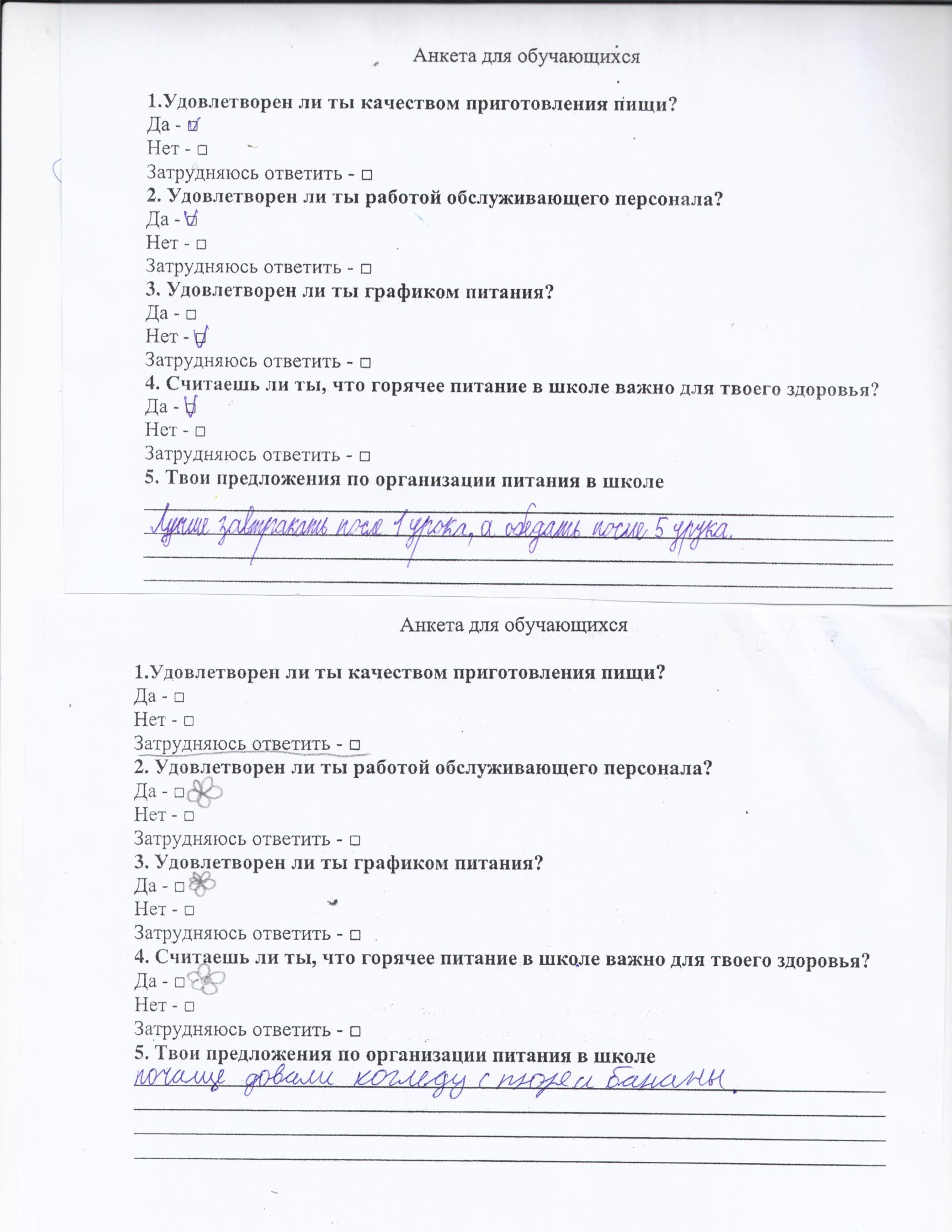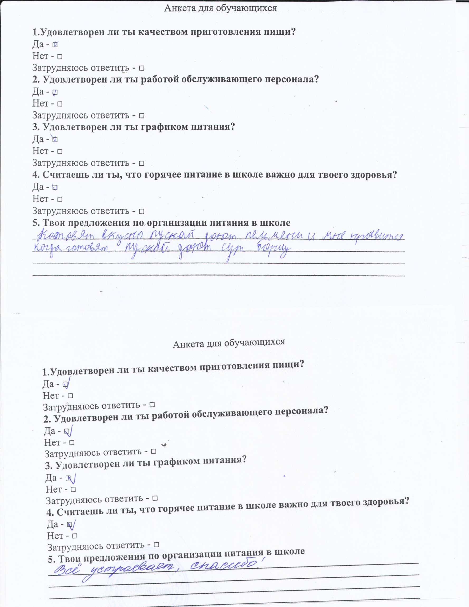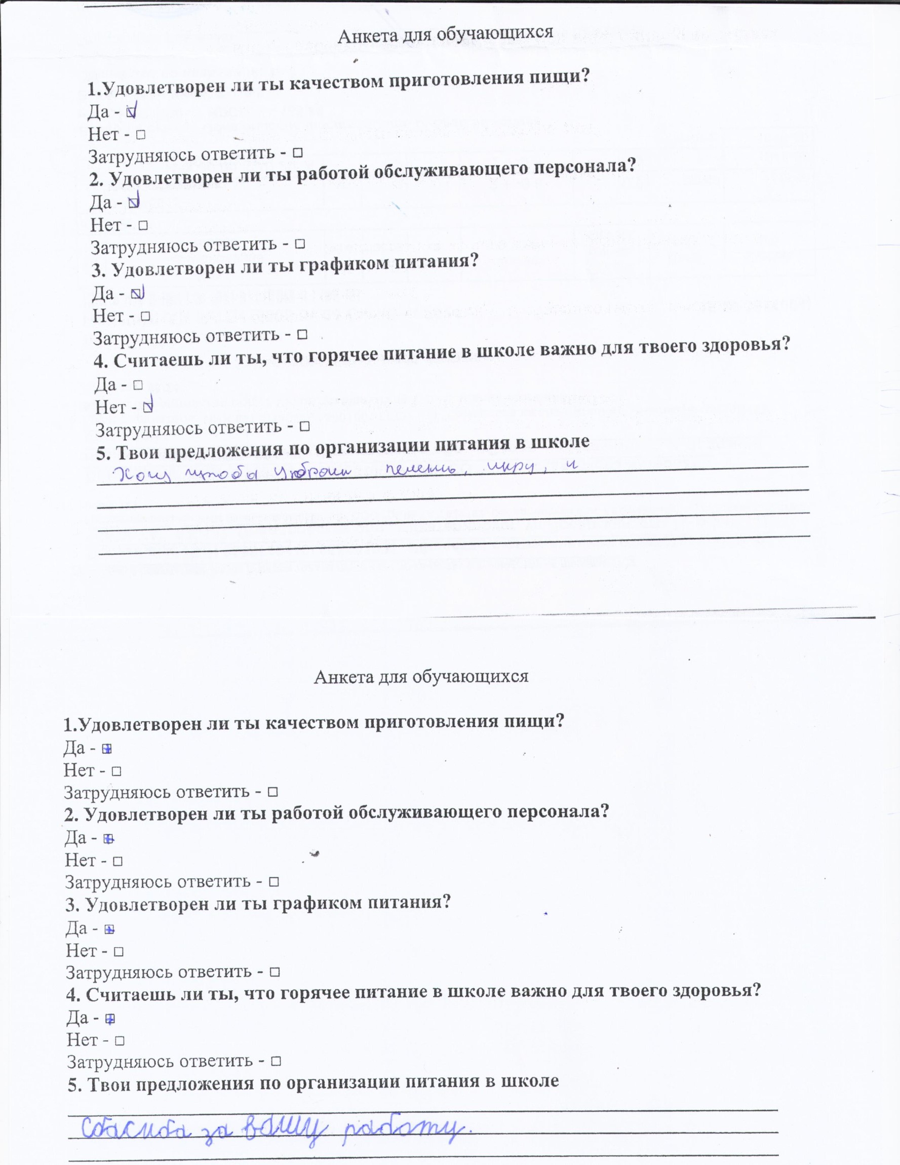Проведен анализ анкет родителей в рамках мониторинга школьного питания, в целях улучшения организации питания школьников учреждения в декабре 2025 года.